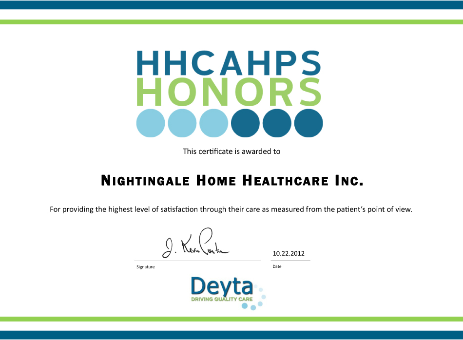 You are leading the way! That was the message of the congratulatory letter from The HHCAHPS Honors program who announced that Nightingale Visiting Nurses was a 2017 HHCAHPS HonorsTM recipient.