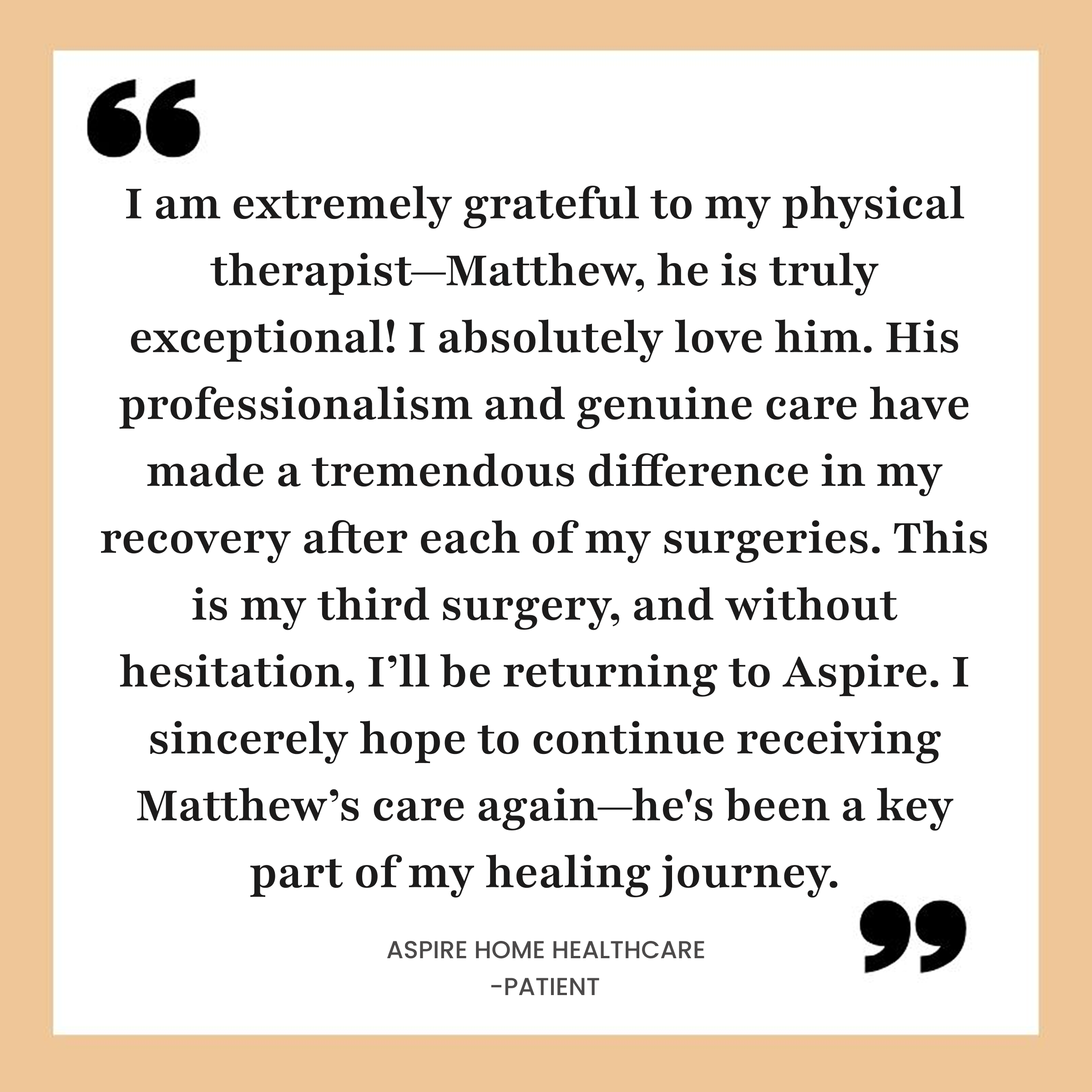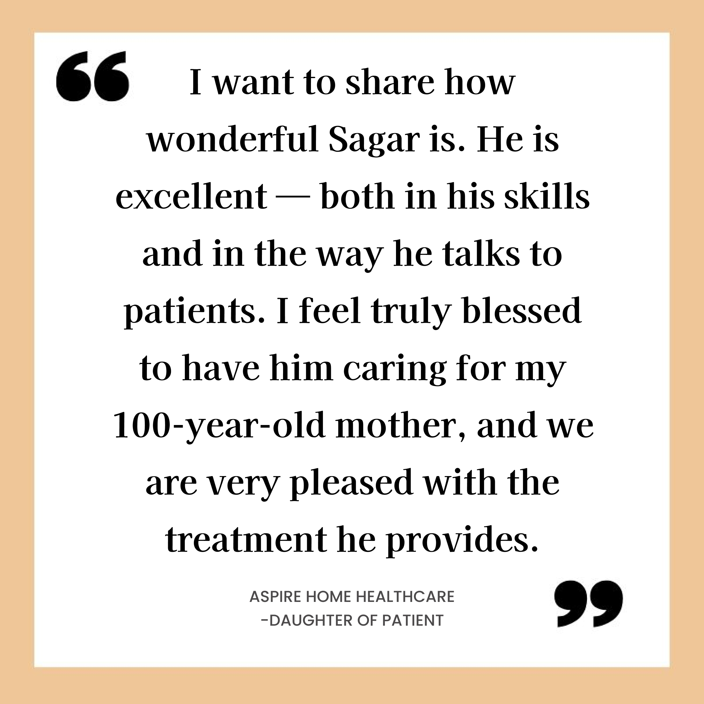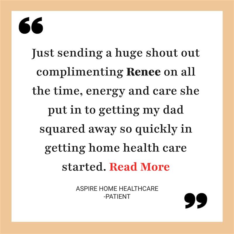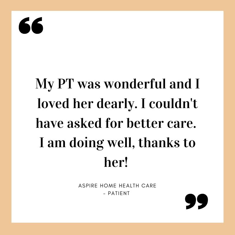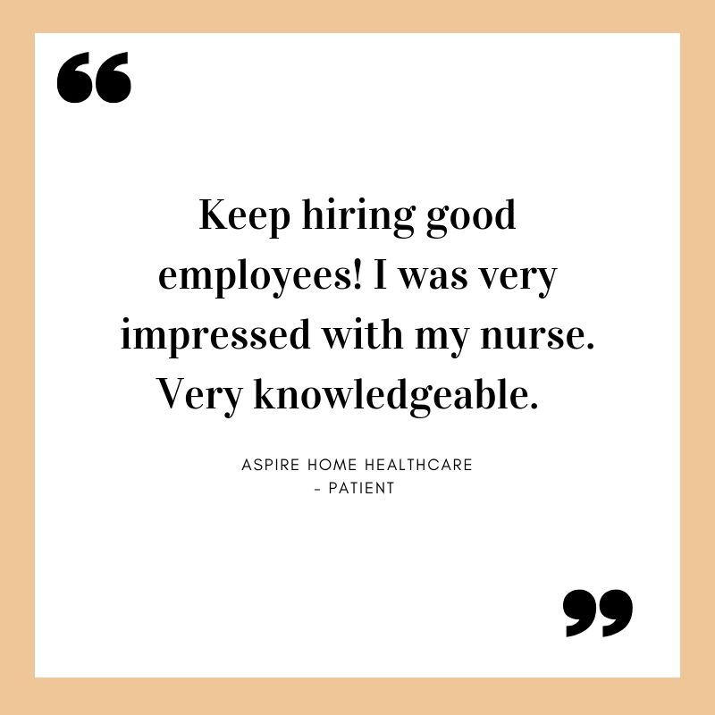 Working with Aspire home health for over 2 years provides me an opportunity to serve my community with great quality of care. Patient care is always a top priority for Aspire home health and staff gets ample education sessions to maintain the quality that we serve with.