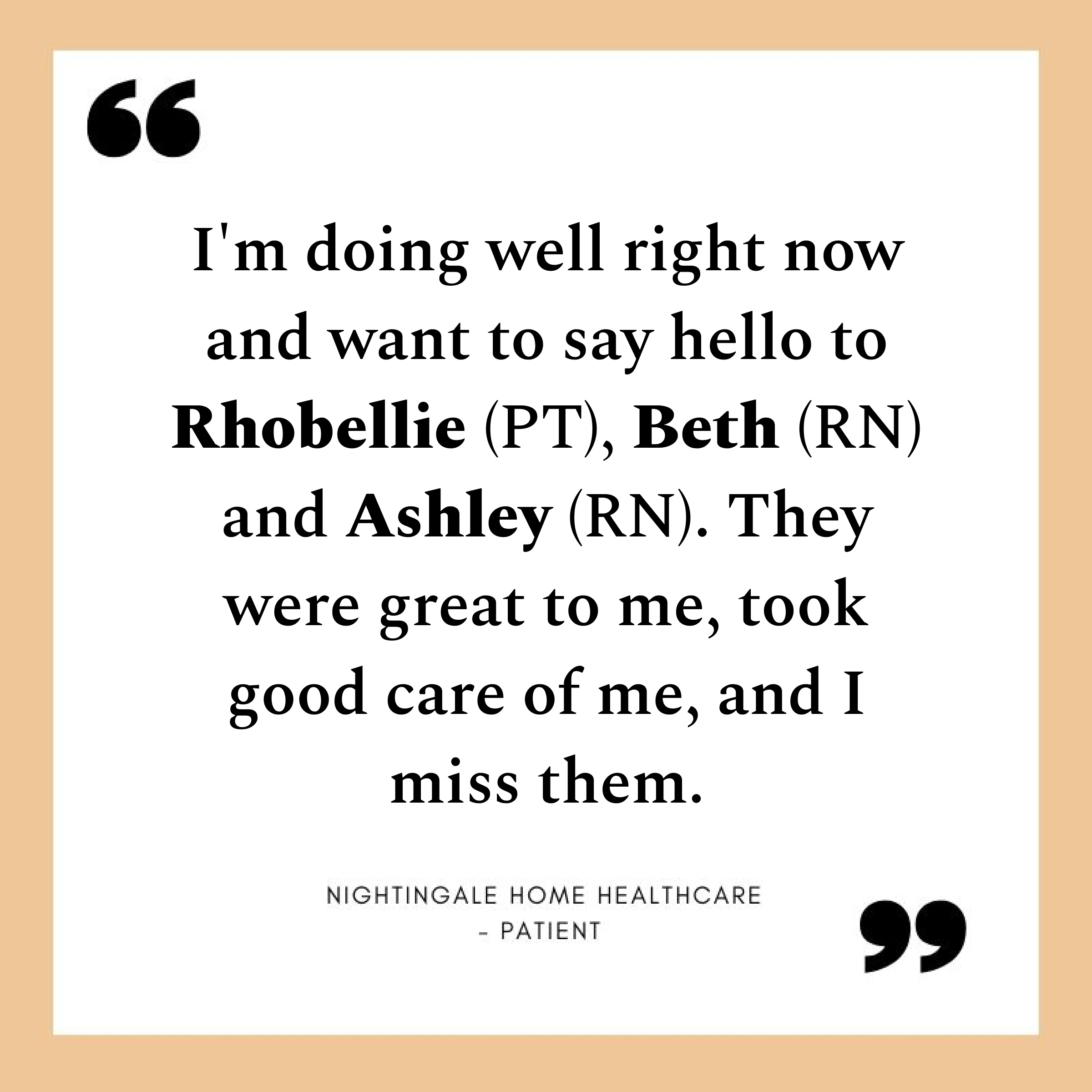 As part of our services a patient liaison department calls each patient to discuss their care. We're proud of the level of care we provide: Below represent some of the kind words our clients and staff have shared. We encourage you to let us know how our services and staff have impacted your life.